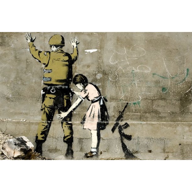 Banksy Girl Searching Soldier Graffiti Art Political Kid Child Painting Pat Down Satirical Satire Building Artist Street Vandal Stencils Urban Brick Wall Peace Cool Wall Decor Art Print Poster 18x12 Walmart Com