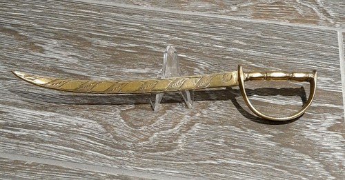 Vintage Ornate Brass Sword Letter Opener Etched Curved Saber 8 Ebay